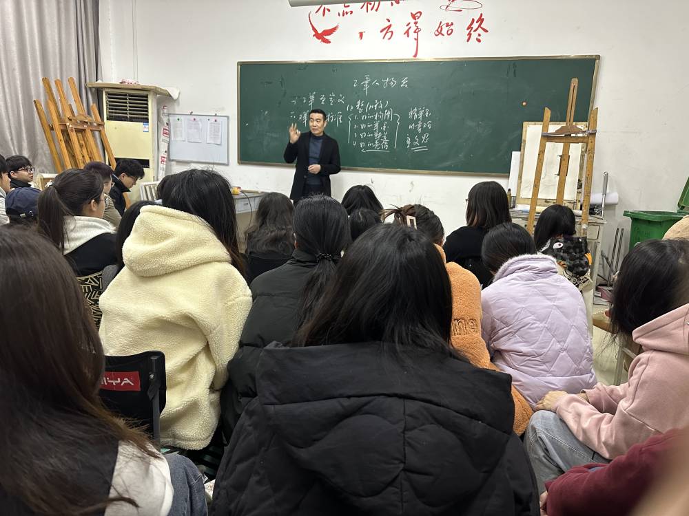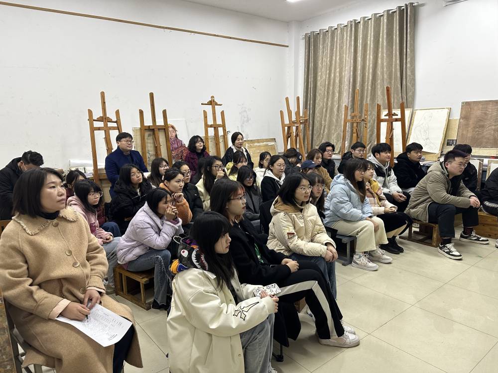 3月2日上午,美术学系教师王志国的公开课《工笔人物画技法解析》在滨湖校区文源楼B107教室进行,院党委书记李永胜、副书记张美丽、副院长岳翔,教学督导组组长池海营,同行教师陈敏、胡天佼、孟磊等到堂听课。
